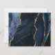 Este elegante orçamento salva a placa de data apresenta uma borda azul-marinho agate com cor d'água cortada com brilho dourado falso. O texto personalizável combina um script de escrita manuscrita dourado, fontes copperplate e itálico em um fundo azul marinho. O verso apresenta um design azul-marinho e um agate-ouro correspondentes.