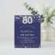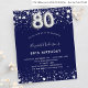 Um convite moderno, na moda e glamouroso para uma festa de aniversário 80. Um fundo azul marinho, decorado com estrelas de falso prata. Personalize e adicione seu nome e detalhes da festa. O número 80 é gravado com uma fonte no estilo do balão.