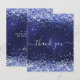 Uma cor azul de fundo do marinho. Decorado com pó falso de cinza prateada. Na frente, um grande guião escrito à mão branca e o texto: Obrigado. Obrigado por ser escrito com um moderno estilo escrito à mão. Voltar: Personalize e adicione seu nome e nota de agradecimento. Para manter os toques depois do seu nome, exclua apenas o nome da amostra, deixe os espaços ou emoji na frente e depois do nome.
