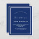 Um moderno, elegante e convite. Um fundo azul marinho decorado com quadros brancos. Personalize e adicione um nome e detalhes. Texto branco.