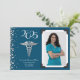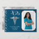 Celebrar o novo médico de formando de medicina da faculdade de medicina com este anúncio de graduação do caduceus azul-prata e marinho! Elegante com uma fronteira de fotos vintage e sotaques de confete prateado! Perfeito para quem se forma como md ou faz doutorado!