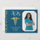 Celebrar o novo doutor de formando de medicina da faculdade de medicina com este anúncio de graduação de ouro e marinho azul caduceus! Elegante com uma borda de fotos vintage e sotaques de confete dourados! Perfeito para quem se forma como md ou faz doutorado!