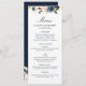 marinho de aquarela e menu de casamento floral de