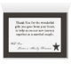 Estes cartões de agradecimento dobráveis são perfeitos por agradecer aos seus convidados pelos presentes que trouxeram, ou até mesmo pela companhia deles no seu evento. Perfeito para um chá de fraldas ou festa de aniversário! São completamente personalizáveis e o poema pode ser completamente removido simplesmente excluindo o texto todo para deixar espaço para uma mensagem pessoal escrita à mão ou você pode personalizar com seu próprio poema ou texto. Estas são impressas em estoque de cobrir (estoque de cartão) de 120 lb de ultra-peso. Cada cartão vem com um envelope branco. Nós temos uma linha inteira dedicada a este design aqui na loja zazzle sob a guia do menu * Design Collections para incluir convites (5x7), Etiquetas de Devolução, Etiquetas de Correio, Selinhas de Envelope, Carimbos de Popales, Picadas de Bolo de Taça, Molas de Garrafa de Água, 1,55 oz de Hershey. Amplos Bares, Autocolantes de Hershey, Molhadoras de Microondas, Cartões de Fogo, Cartões de Lugar Escrevíveis, Tópicos de Bag Goody, Cartões de Agradecimento FLAT (4x5), Cartões de Agradecimento (4x5), Cartões de Favor, Cartões de Meninos, Cobrir de Lollipop, Marcadores, Cartões de Bingo, Cartões, Bingo, Marcadores de Cartão, Folhas de Chamada de Cartão Bingo, Cartões de Aviso Escritíveis (4x5), etc.