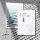As peças desta elegante suíte de náuticas apresentam estilo náutico clássico com uma aparência limpa e minimalista. Ondas estilísticas em tons de aqua a azul marinho e uma ilustração de ancoragem e corda fornecem sotaques exclusivos. Um layout assimétrico com os nomes da noiva e do noivo tendo precedência dá a este convite de casamento uma surpreendente aparência moderna. Perfeito para casamentos de iates, barco, praia ou destino de verão. Procure ID836 para ver este conjunto completo e outros com sotaques de elementos marinhos alternativos.
