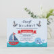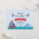 Convite para Chás de fraldas náuticos. Convite para Chá do Baby Boy. Âncora. É um menino. Nave de vela. Baleia. Marinho, Azul, Vermelho. Para mais personalização, clique no botão "Personalizar" e use nossa ferramenta de design para modificar este modelo.