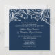 Elegante e inspirador, este design apresenta um belo Marinho clássico, azul e branco, design de damask de safra. Os detalhes bonitos nos sotaques florais fazem disso uma escolha excelente para uma série de temas de casamento. A simplicidade de cor permite que a riqueza do design de folha seja o destaque desse convite 5x7. Este convite de casamento é perfeito para um casamento formal ou ao ar livre. cartões salve a data correspondentes, resposta, recepção, direção e cartões de agradecimento também estão disponíveis.