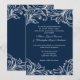 Elegante e inspirador, este design apresenta um belo Marinho clássico, azul e branco, design de damask de safra. Os detalhes bonitos nos sotaques florais fazem disso uma escolha excelente para uma série de temas de casamento. A simplicidade de cor permite que a riqueza do design de folha seja o destaque desse convite 5x7. Este convite de casamento é perfeito para um casamento formal ou ao ar livre. cartões salve a data correspondentes, resposta, recepção, direção e cartões de agradecimento também estão disponíveis.