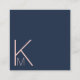 Cartão de visita de quadrado de elegância minimalista com marinho azul frente com monograma elegante pincelado no canto inferior esquerdo, o verso contém todas as informações importantes em caracteres elegantes