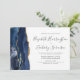 A borda esquerda deste elegante convite de casamento moderno apresenta um marinho azul de aquarela agata borda aparada com falso brilho dourado. O texto personalizável combina a escrita manual de cinzas de carvão, as fontes em copperplate e itálico em um fundo branco. Substitua facilmente a imagem de exemplo no verso por sua própria foto horizontal.