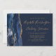 A borda esquerda deste elegante convite de casamento moderno apresenta um marinho azul de aquarela agata borda aparada com falso brilho dourado. O texto personalizável combina manuscrito dourado, fontes em copperplate e itálico em um fundo azul marinho. Substitua facilmente a imagem de exemplo no verso por sua própria foto horizontal.