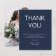 Marinho de Foto Simples de Orçamento Cartões de agradecimentos Azul. Um valor para o alternativo menor de 4,5 x 5,6 polegadas é usado como padrão para a opção de semigloscópio, que é recomendada para convites e é de espessura semelhante a um cartão postal. A opção Satin é um estoque de papel muito mais fino. Cartões de agradecimentos Personalizado De Fotografia Simples De Orçamento. Um design totalmente personalizável. Altere facilmente as palavras e substitua a imagem de exemplo no verso por sua própria. A cor e o tipo da fonte podem ser alterados através do menu de edição. Você também pode alterar as cores do texto e do plano de fundo em ambos os lados, se desejar.