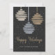 Este cartão de saudação de fotos de feriado profissional de 5" x 7" apresenta ornamentos de abstrato em um fundo azul marinho escuro de neve com a saudação editável, "Feliz feriado" e um espaço reservado para o nome de sua empresa. A parte de trás tem um ponto para a foto da sua empresa com marcadores de posição para uma mensagem personalizada e nomes de remetente.