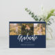 Marinho de Lançamento de Script de Colagem de Fotos Graduação 4 - Cartão de Lançamento de Script Azul. Personalize facilmente isso alterando o texto e substituindo as fotos pelo seu. Uma maneira moderna e moderna de anunciar sua graduação este ano!
