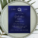 Um convite moderno e elegante para a festa de formatura. Um fundo azul marinho, texto branco. A cor azul é irregular. Personalize e adicione um nome, ano e detalhes.