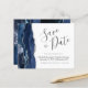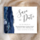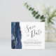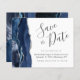 Este elegante orçamento salva a placa de data apresenta um marinho azul de aquarela agata borda cortada com falso brilho prateado. O texto personalizável combina o script de escrita manual de cinzas de carvão, o copperplate e as fontes itálicas em um fundo branco. O verso apresenta um design azul marinho e agate prateado correspondentes.