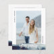 Simples, moderno, elopeia orçamentária ou menor anúncio de casamento e recepção de casamento postada ou convite de festas com foto. A frente apresenta uma moldura de aquarela com delicados fios de ouro (este é um efeito digital) e o título "após a festa" escrito em uma trendy script com supressões e seus primeiros nomes e data de casamento na tipografia moderna. No verso, personalize o anúncio da foto do casamento, adicione uma recepção ou convite de festas e assine seus nomes em um roteiro semelhante a assinatura.