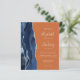 A borda esquerda deste elegante convite de casamento moderno apresenta um marinho azul de aquarela agata bordada com falso brilho prateado. O texto personalizável combina manuscrito, fontes copperplate e itálico em cinzas prateadas leves em um fundo laranja queimado. O verso apresenta um design azul marinho e agate prateado correspondentes.