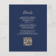 A borda esquerda deste elegante convite de casamento moderno apresenta uma borda falsa de pêssego. O texto personalizável combina manuscrito de pêssego, fontes em copperplate e itálico em um fundo azul marinho. O verso fornece espaço para detalhes do casamento em um fundo azul de marinho sólido, junto com um código QR que os convidados podem digitalizar para visitar seu site e RSVP, o que economiza o custo de imprimir e enviar cartões RSVP separados.