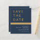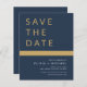 Marinho Elegante de Casamento de Orçamento Azul e Cartões salve a data Dourados. Os Cartões salve a data contêm uma moderna tipografia cursiva escrita escrita escrita escrita escrita escrita escrita escrita que é elegante, simples e moderna a ser usada depois da simples celebração do dia de casamento minimalista.