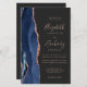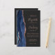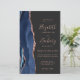 A borda esquerda deste elegante convite de casamento moderno apresenta um marinho azul de aquarela agata borda aparada com falso brilho dourado. O texto personalizável combina manuscrito dourado, fontes em copperplate e itálico em um fundo fora de preto. Adicione mais detalhes no verso, juntamente com um código QR para ajudar seus convidados a visitar seu site de casamento.
