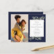 Apresentando delicadas folhas de aquarela em um fundo azul marinho, este convite de casamento botânico pode ser personalizado com suas fotos especiais e detalhes especiais do dia do casamento. Projetado por Thisnotme©