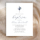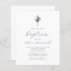 Este elegante convite batismo apresenta um buquê de aquarela de flores azuis e marinhos poeirentas e folhagem prateada numa cruz de folha de folhas prateada, acima das palavras "junte-se a nós para o batismo do nosso filho" em elegante marinho azul caligrafia e cinza de carvão itálico. Personalize-o com o nome no script azul e os detalhes na fonte de sans da cinza.