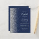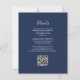 A borda esquerda deste elegante convite de casamento moderno apresenta uma borda falsa de prata. O texto personalizável combina a escrita manual de cinzas prateadas, fontes copperplate e itálico em um fundo azul marinho. Adicione mais detalhes no verso, juntamente com um código QR para ajudar seus convidados a visitar seu site de casamento.