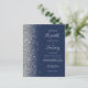A borda esquerda deste elegante convite de casamento moderno apresenta uma borda falsa de prata. O texto personalizável combina a escrita manual de cinzas prateadas pálidas, fontes copperplate e itálico em um fundo azul marinho. O verso apresenta um design marinho azul e prateado correspondente.