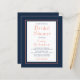 Este design simples, clássico e minimalista apresenta as palavras "Chá de panela" e o nome da noiva na fonte moderna de exibição de coral, com o texto remanescente em marinho azul ou coral em um retângulo branco enquadrado por uma fina linha de coral. A borda/fundo e o verso são azuis marinhos sólidos.