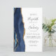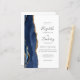 A borda esquerda deste elegante convite de casamento moderno apresenta um marinho azul de aquarela agata borda aparada com falso brilho dourado. O texto personalizável combina manuscrito, copperplate e fontes itálicas em cinzas de carvão em um fundo branco. Adicione mais detalhes no verso, juntamente com um código QR para ajudar seus convidados a visitar seu site de casamento.