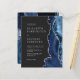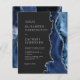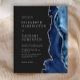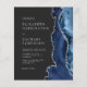 A borda direita deste elegante convite de casamento moderno apresenta um marinho azul de aquarela agata bordada com falso brilho prateado. O texto personalizável combina fontes de cinza prateada se, copperplate e itálico estiverem em um fundo preto de ardósia. O verso apresenta um design azul marinho e agate prateado correspondentes.