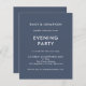 Simples Marinho Azul Festa de Casamento Azul Noite Convidada. Um alternativo de 4,5 pol x 5,6 pol com preço inferior. Disponível em um STOCK DE CARTÃO SEMI GLOSS 110 lb, que é a opção padrão (recomendada para convites), OU um STOCK DE PAPEL THINNER SATIN FINISH 80 lb (ideal para gabinetes). Fácil de personalizar o texto para seus detalhes e alterar as cores da tipografia e do fundo em cada lado, se você quiser, pode ser alterado para qualquer opção ou sua escolha por meio da opção personalizar mais.