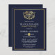 Marinho De Orçamento Azul E Mascarada Dourado Doce 16 Convites de festas. Apresentando uma máscara de folha de alumínio dourada falsa no topo contra um fundo azul marinho. Perfeito para uma festa de aniversário 16 moderna, mas elegante!