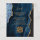 Este elegante convite de casamento apresenta uma imagem de fundo da marinho azul de aquarela agada com falso brilho dourado. O texto personalizável combina manuscrito, protetor e fontes itálicas de cor dourada. O verso fornece espaço para detalhes do casamento em um fundo de agate azul marinho correspondente, juntamente com um código QR que os convidados podem digitalizar para visitar seu site e RSVP, o que economiza o custo de imprimir e enviar cartões RSVP separados.