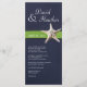 Dê à paisagem da sua mesa de casamento uma sensação fresca e náutica com este menu de marinho embelezado com fita verde e um peixe-estrela branco blindado