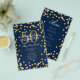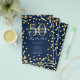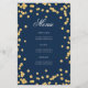 Design de "Programa de Festa de aniversário" elegante com Glitter Confetti no Dourado e Marinho com texto personalizado.