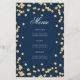 Design de "Programa de Festa de aniversário" elegante com Glitter Confetti no Dourado e Marinho com texto personalizado.