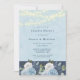 Design apresenta um elemento floral impresso em tons azuis poeirentos e rosas azuis marinhos e pedonais florescendo com uma corda-serras num fundo azul de aquarela... Excelente para as comemorações do casamento!