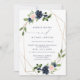 Este convite de casamento moderno emparelha uma estrutura geométrica moderna de folha de ouro falsa com cor d'água eucalipto e buquês de noz azul marinho e cor-de-rosa pincel. Ao lado de um belo roteiro de leite e uma fonte limpa de sans serif, este convite para o casamento é certamente para abençoar todos os seus convidados!