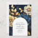 Convite de casamento floral de marinho e ouro personalizável para suas especificidades de evento.
