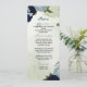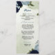 marinho e flores azuis empoeiradas menu de casamen