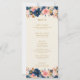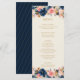 As flores frescas, elegantes, de cor d'água, em azul vibrante marinho e cor-de-rosa pincelado doce, são acentuadas com dourados antigos macios. Este menu foi projetado para corresponder ao nosso Marinho de Elegância Selvagem, Blush e a coleção de convites de casamento Dourada