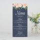 Belo cartão de cardápio de marinho floral para o seu ensaio de janto de casamento ou recepção moderno!