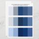 Três paletas coloridas de azul no marinho, ultramarina, safira, mar do norte e azul de pântano com sombras de cinza para vestidos de noiva, decoração e convites. Três paletas de cores separadas variam de azul empoeirado a azul de médio a tons de joias profundas de azul, em uma placa que você pode carregar com você fazer que é fácil comparar cores e melhorar o fluxo de cores e a continuidade ao selecionar seus materiais e suprimentos para seu casamento.