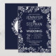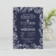 Padrão elegante, moderno, branco chico e marinho azul-tenda desenhado à mão floral, convites para casamento. Este design clássico e sofisticado é perfeito para o casal de competição de tendências e na moda. Personalize com sua própria mensagem na frente, assim como um monograma personalizado inicial no verso. Todas as impressão de fotos.