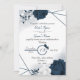 Marinho elegante, flores azuis e brancas incrível convite para casamento botânico