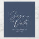Faça seu anúncio de casamento exclusivo com este Marinho legante Salve a Etiqueta de Vinho de Data. Projetado com um fundo de marinho profundo e um roteiro branco sofisticado, este rótulo adiciona um toque de na moda às garrafas de vinho para festas de noivado, celebrações de casamento ou eventos especiais. Uma maneira perfeita de surpreender seus convidados e criar uma lembrança memorável para seu grande dia!