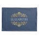 Um elegante marinho azul e um monograma dourado florescem uma esteira. Adicione seu nome entre o floral dourado floral na frente. Projetado para você pelo Blackberry Boulevard.