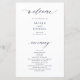 A moderna e simples tipografia minimalista tende a cerimônia branca limpa e a modelo do programa de casamento do barato do BUDGET, com um desenho de caligrafia azul-marinho escuro da moda-chica. +++++++++++ Fácil de personalizar com o seu texto personalizado em ambos os lados!
